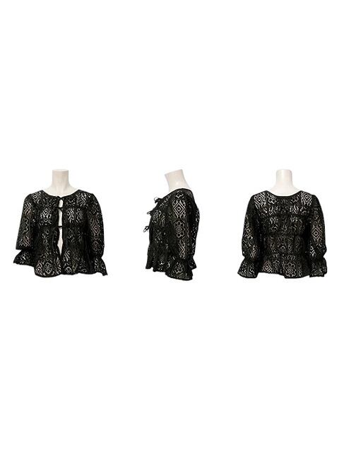 クロシェ素材にシャーリングステッチを施し立体的なフォルムが目を惹くトップス。