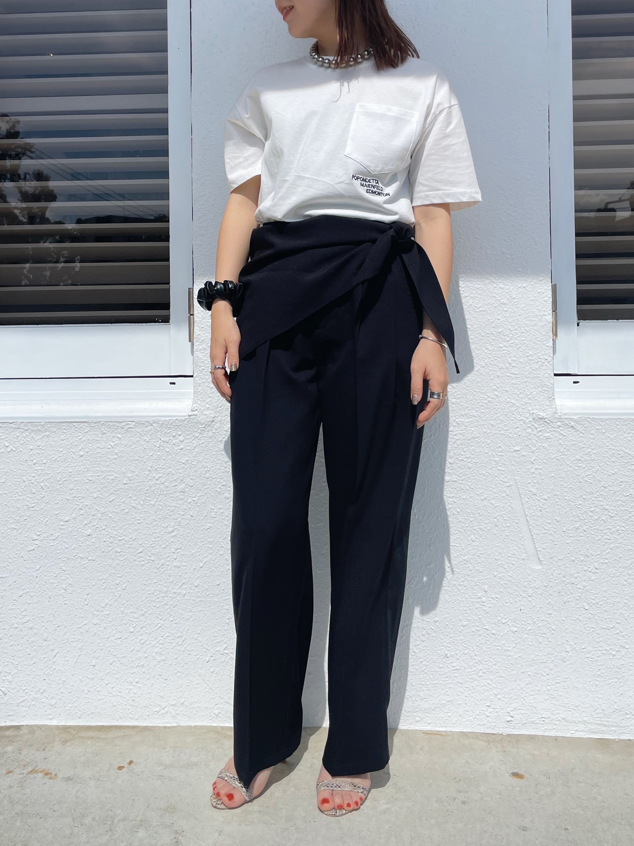 小物使いが苦手な方でもスカーフとパンツは同素材なので、統一感がでて合わせやすい!