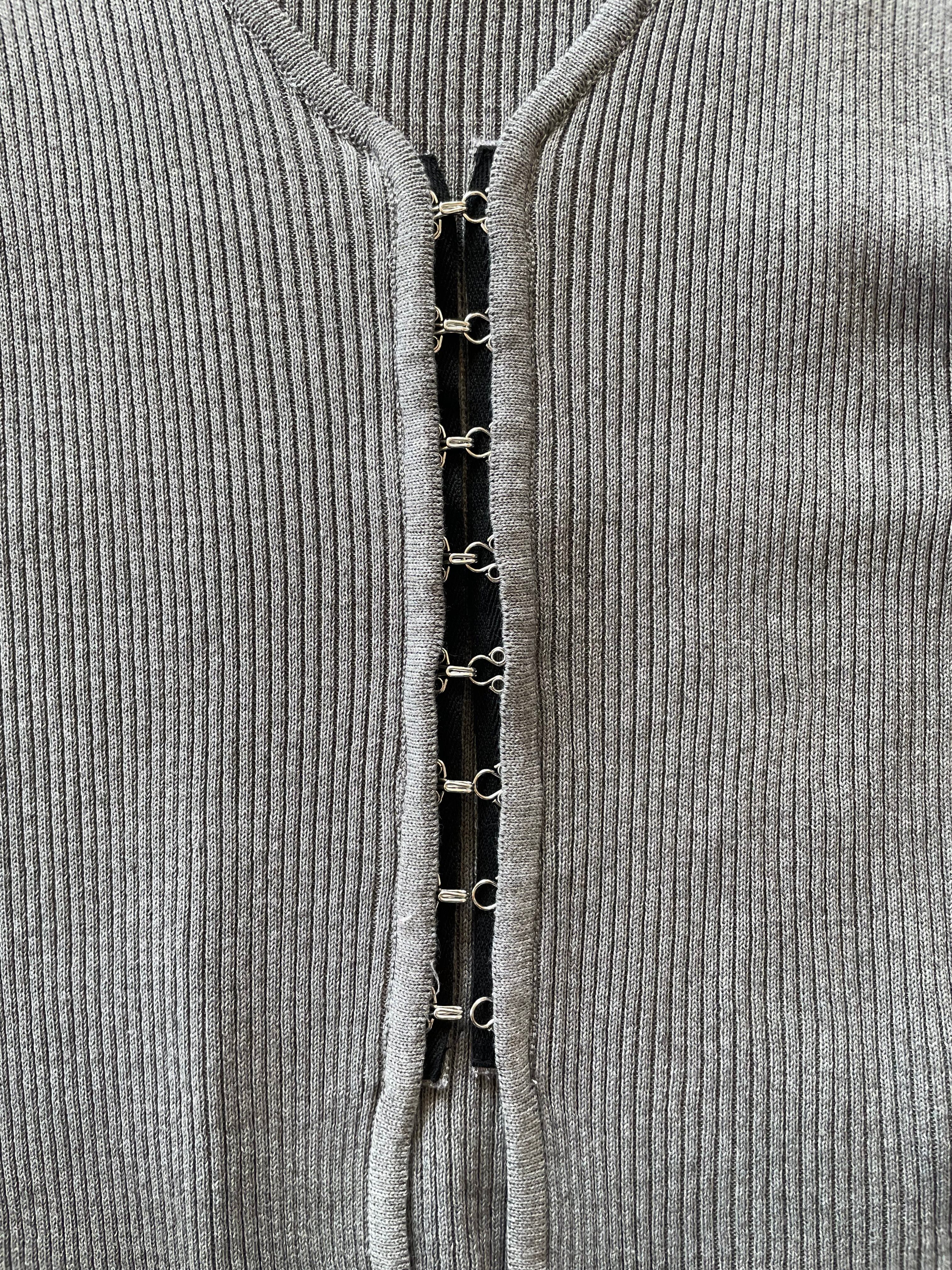 フロントのホックデザインがトレンド感がありアクセントになります。