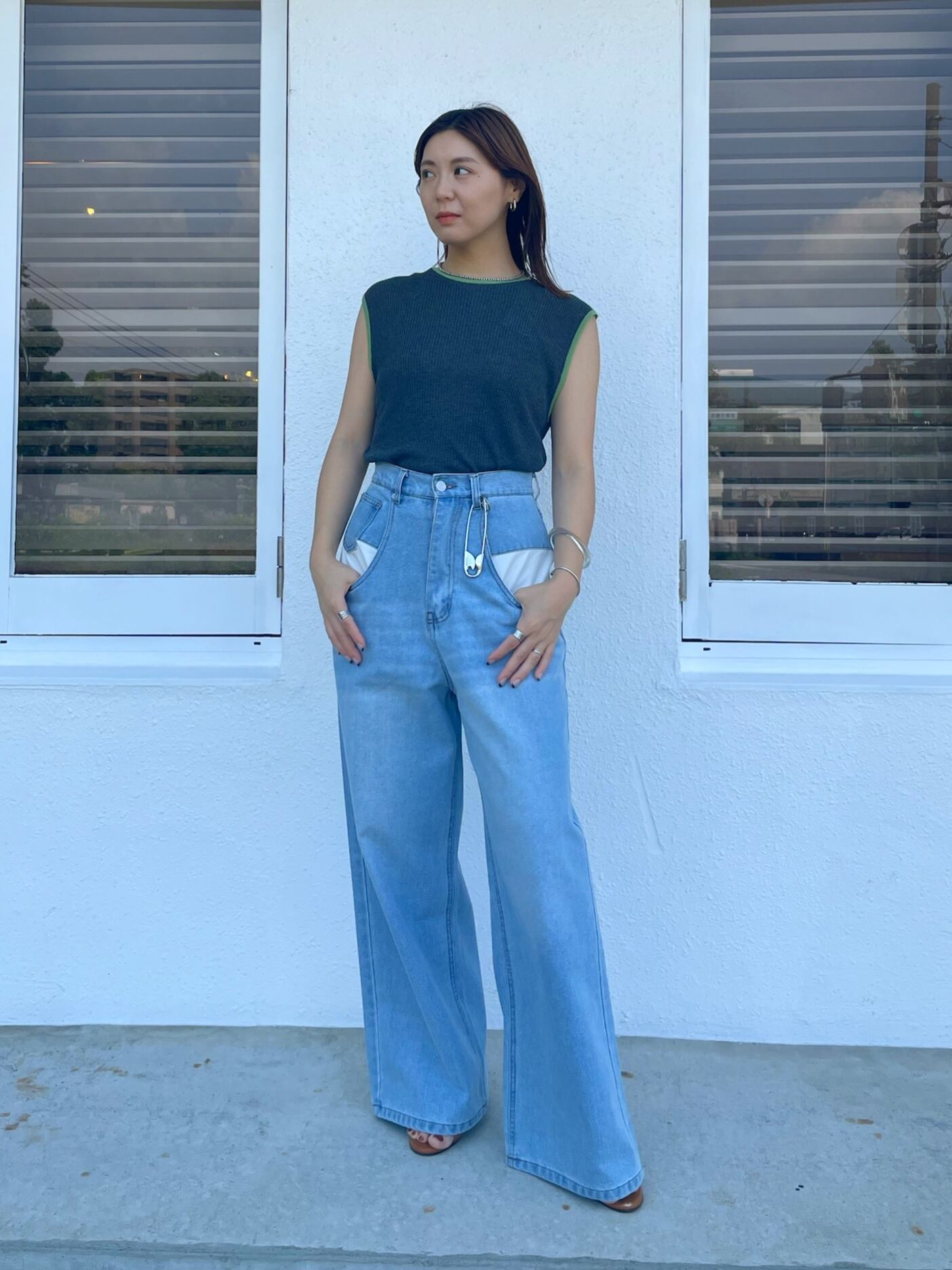 トレンド感あふれるルーズシルエットに、配色ルーズポケットデザインが目を惹くデニム。