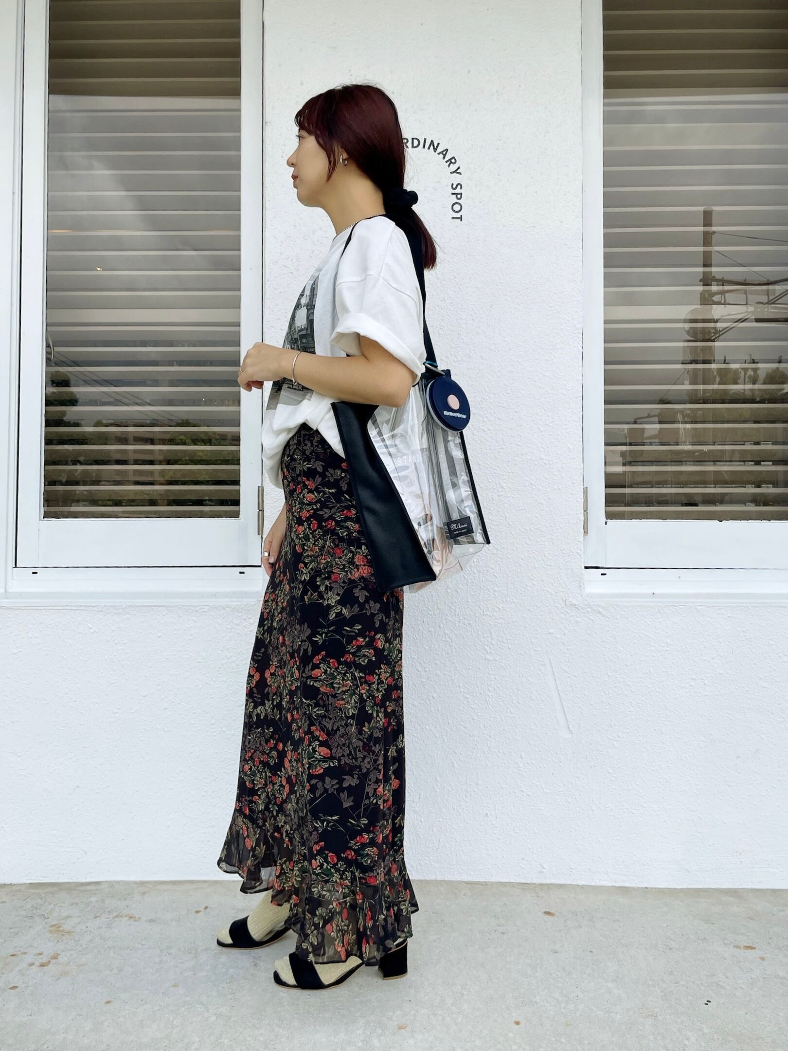 ヴィンテージ感のある花柄生地を使用したナロースカート。