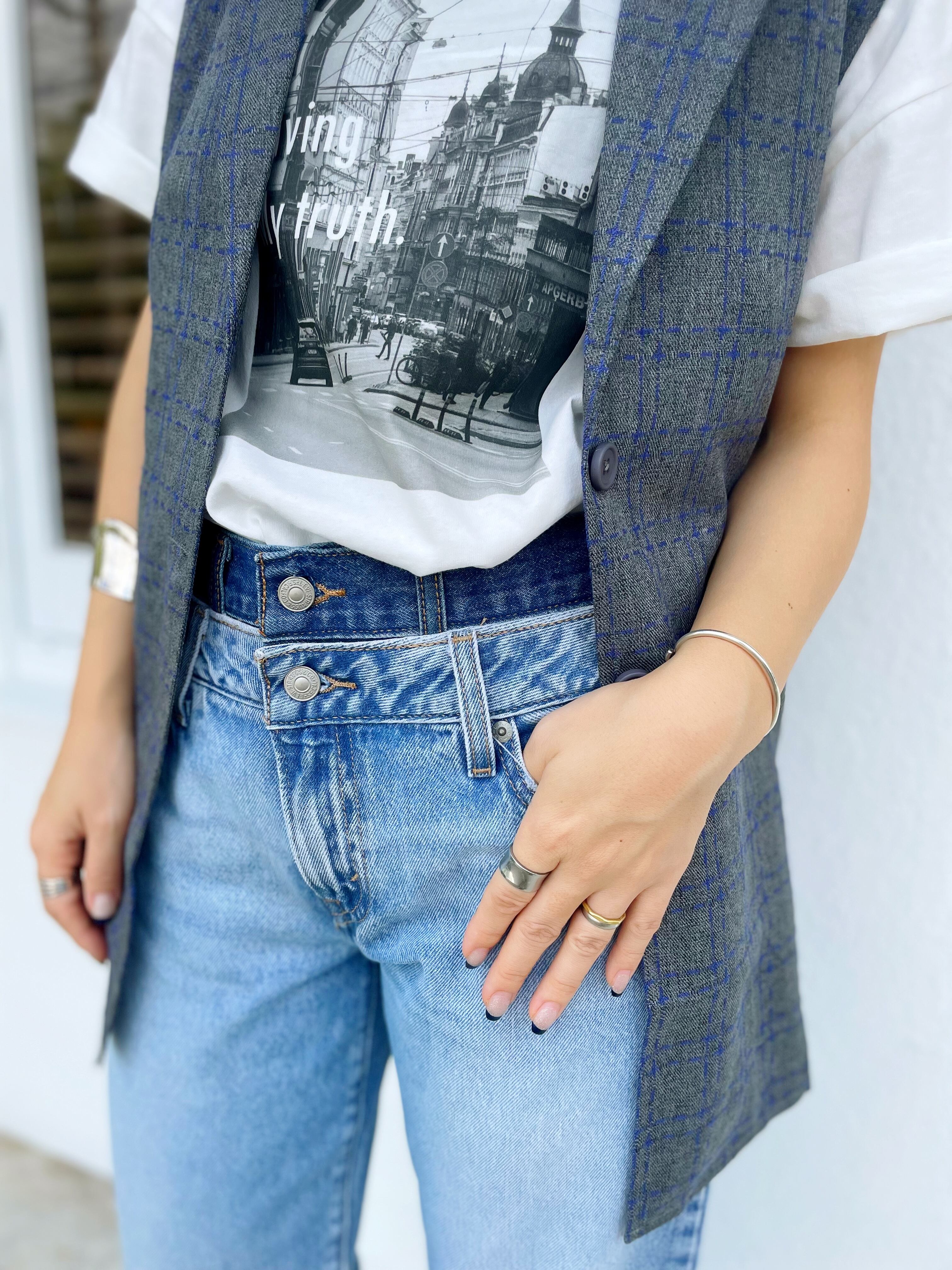 ボックスシルエットは緩めに結び、ウエストフィットがお好みでしたら紐をタイトに結んでください。