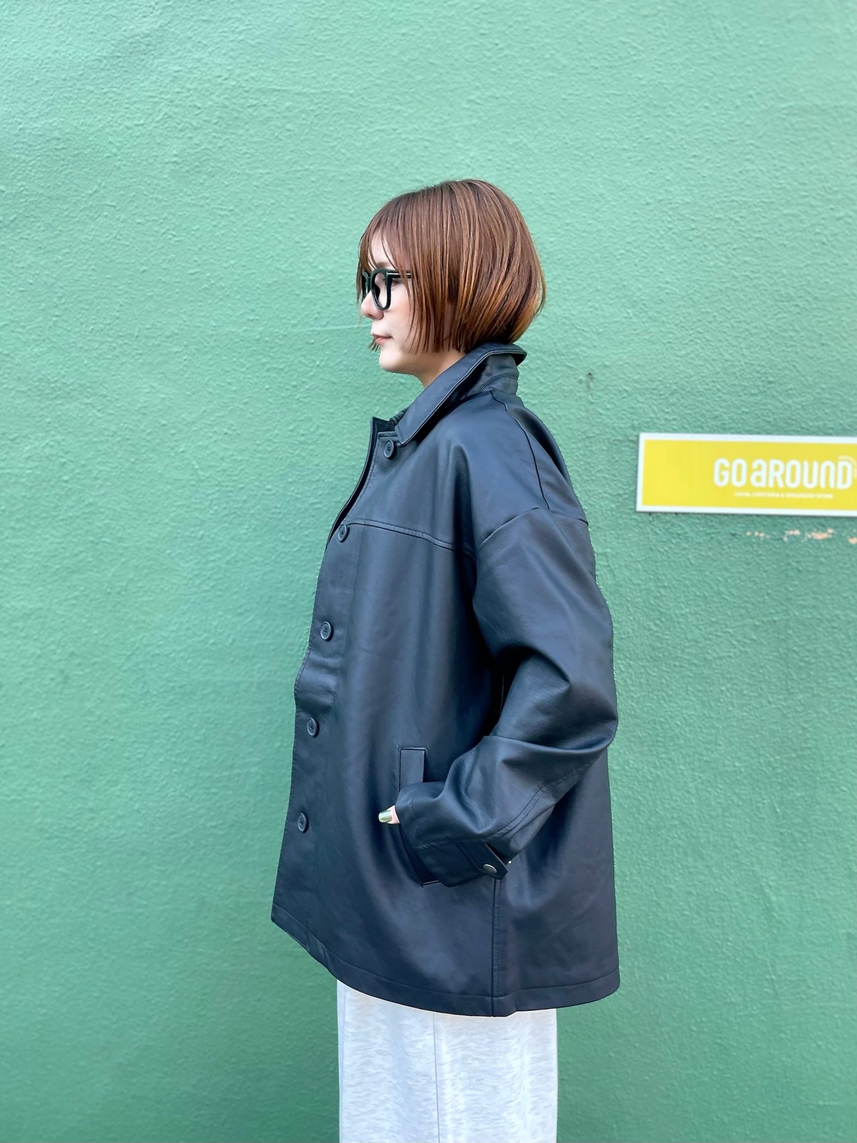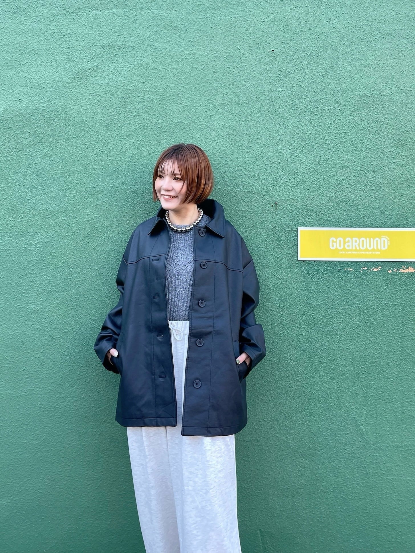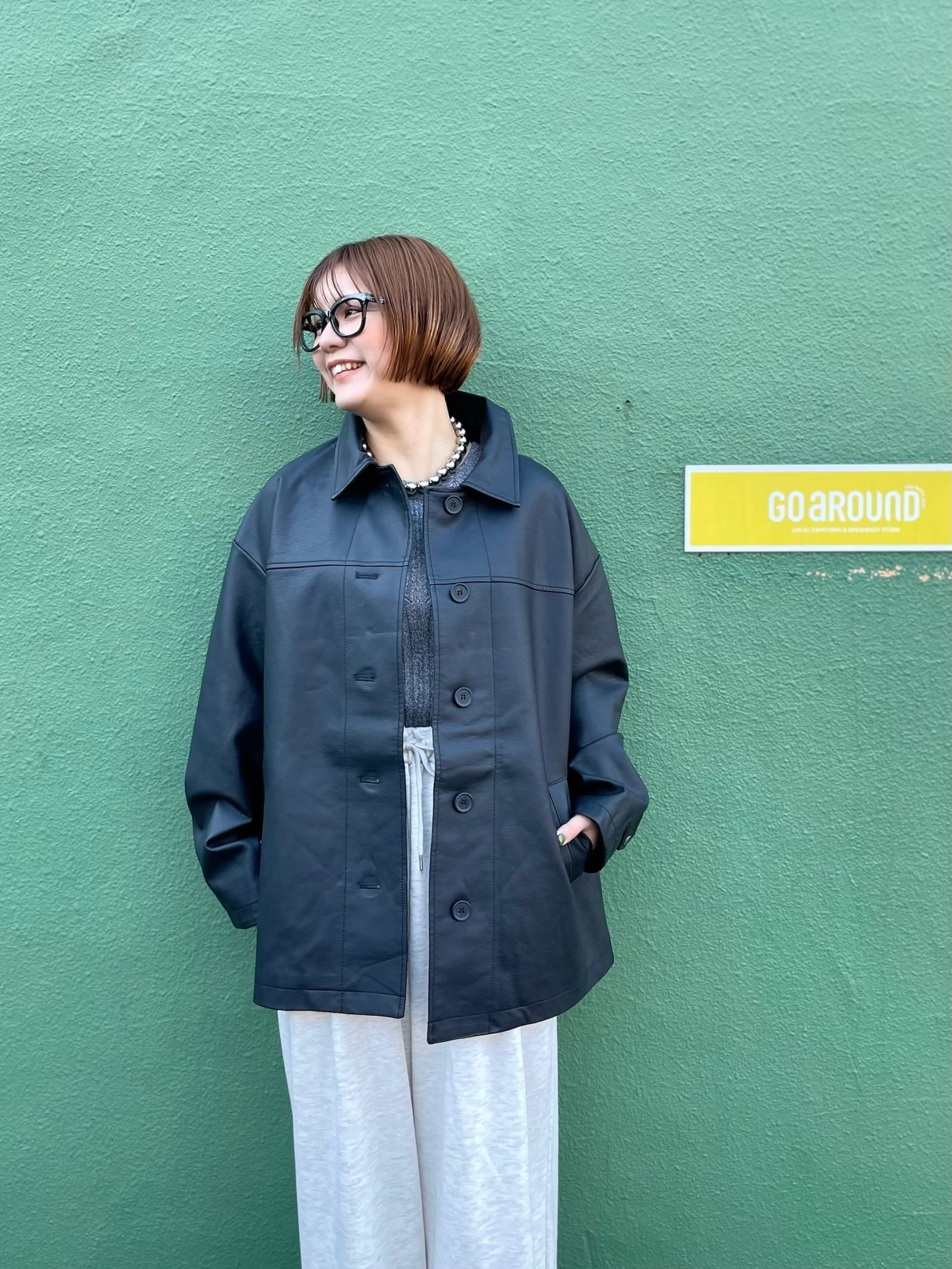 柔らかなエコレザー素材で仕立てた、ステンカラーデザインのライトアウター。