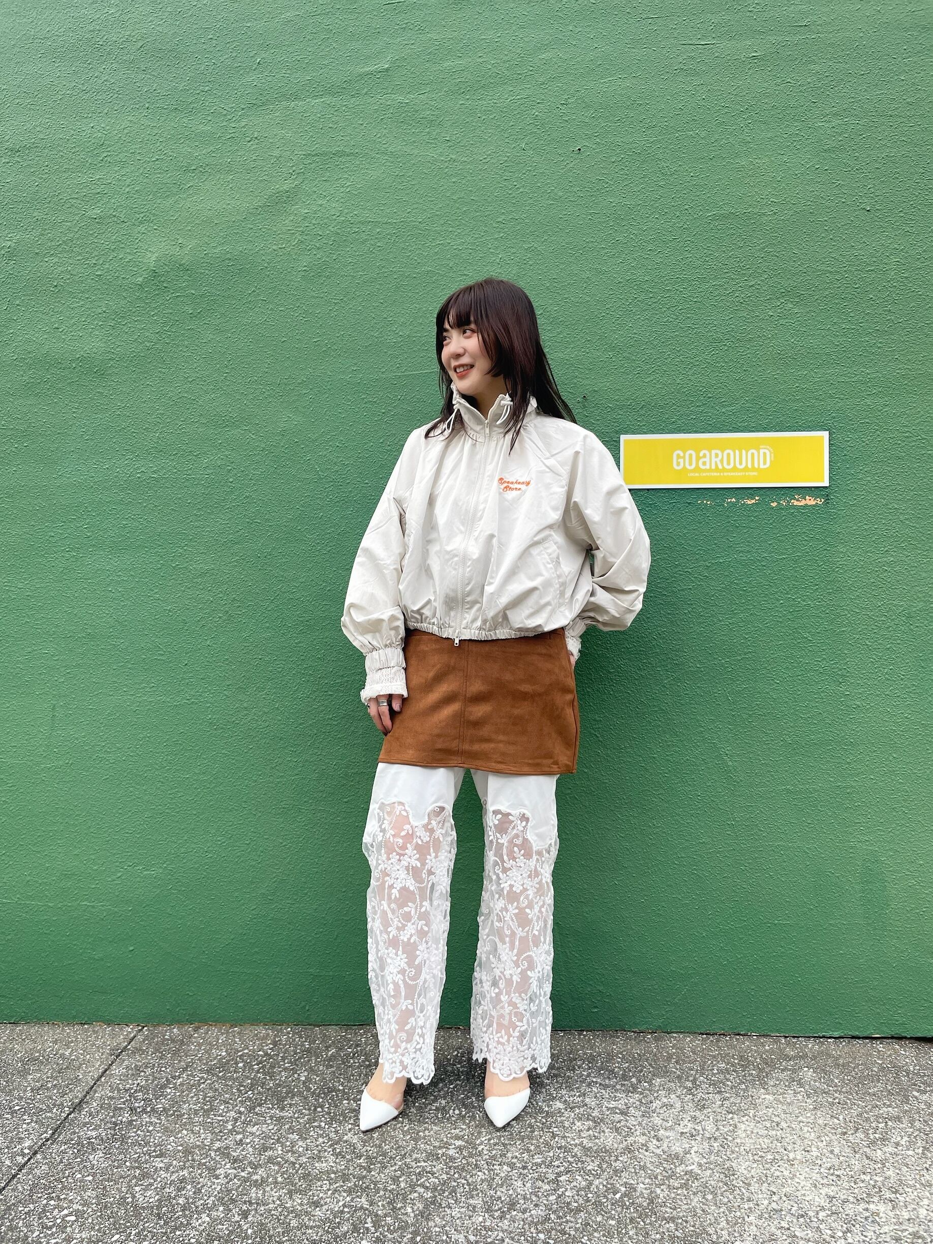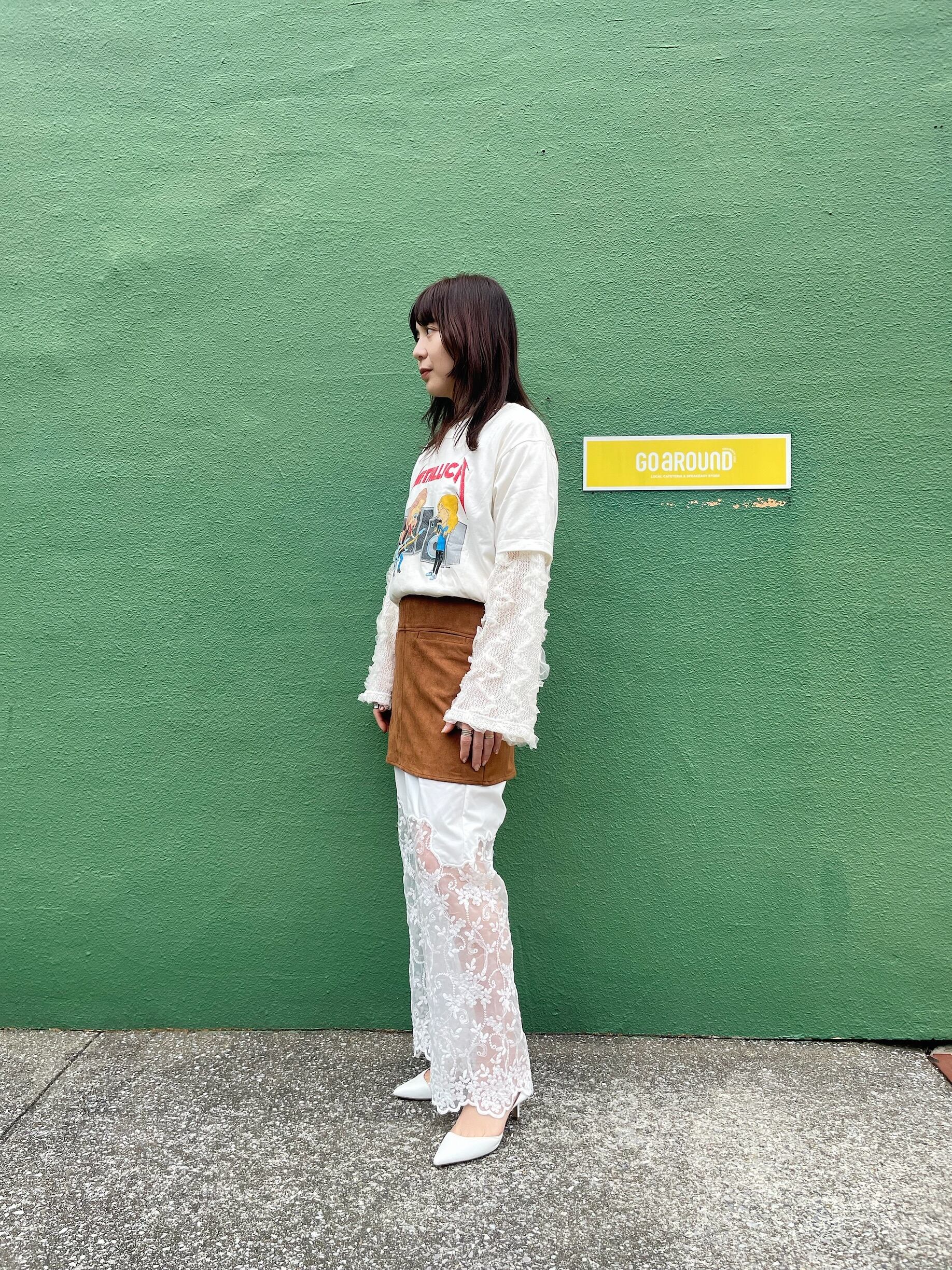 柔らかなフェイクスエード素材を使用した切替ミニスカートが登場。